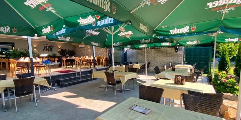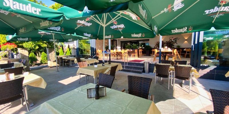 Sommergarten mit überdachter Terrasse (bis zu 90 Plätze).